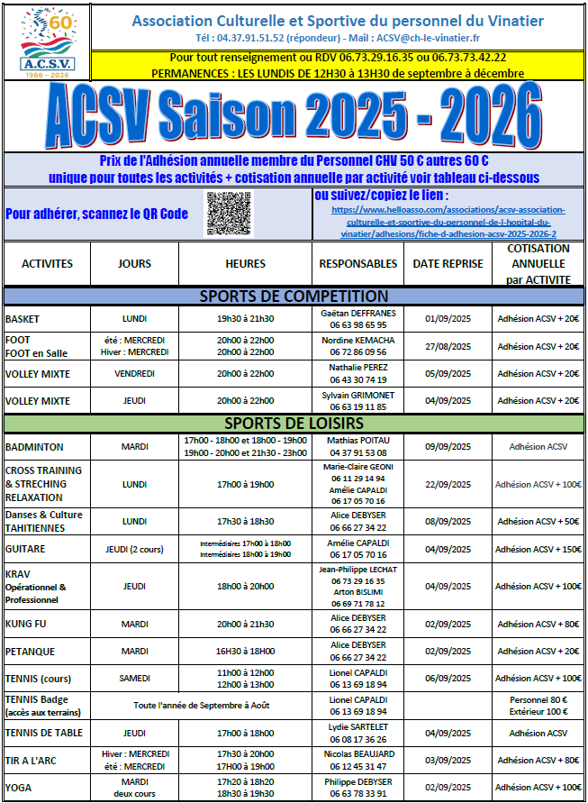 Retrouvez ici l’ensemble des activités et leurs horaires associés.